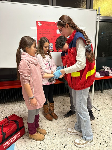 Der Fachbereich Mathematik begeisterte dort mit ihrer spielerischen Darstellung von mathematischen Körpern. Der spannenden Erste-Hilfe-Vorführung der Schulsanitäter AG war es indes zu verdanken, dass man immer einmal wieder stolzen Schülerinnen und Schüler mit professionell verbundenen Gliedmaßen wie Armen und Köpfen begegnete.