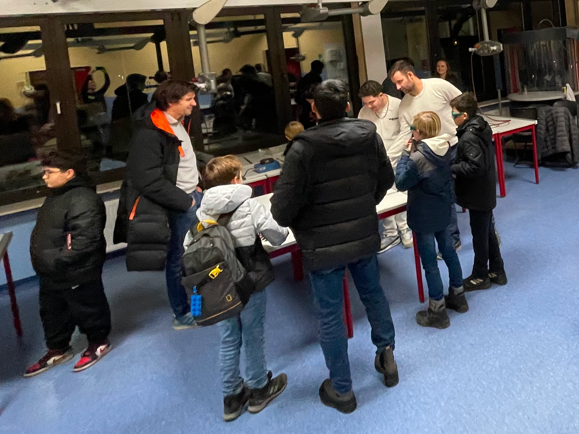 Dabei bildete die Pausenhalle einen prägnanten Meetingpoint, wo auch die Führungen durch die Schülerschaft der Abschlussklasse 10Rc begannen. Der Schulsprecher Samuel Bakbakhani Darbroudi und seine Mitschülerinnen führten durch die Schule und informierten Eltern und interessierte Kinder über den Schulalltag.